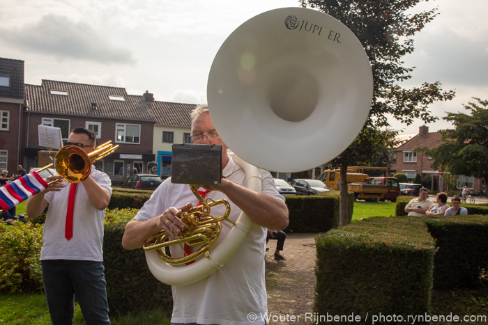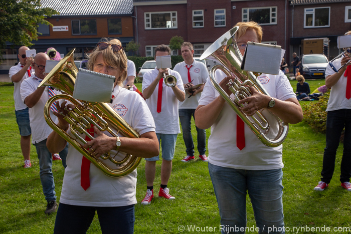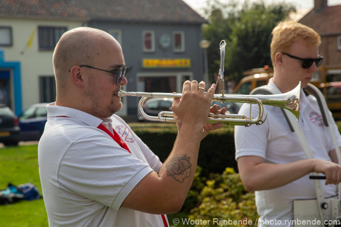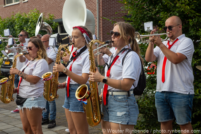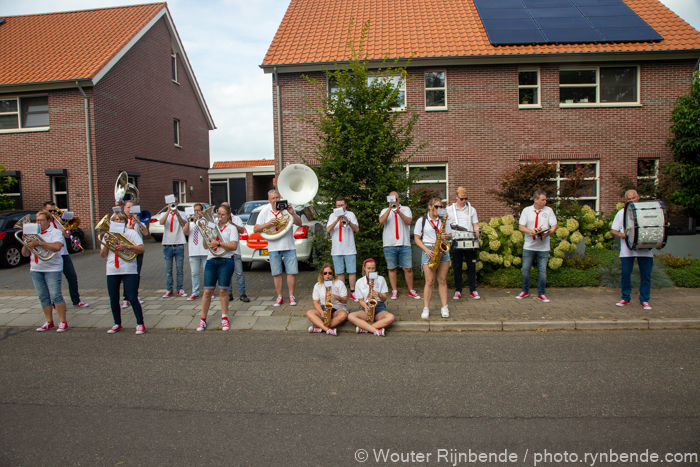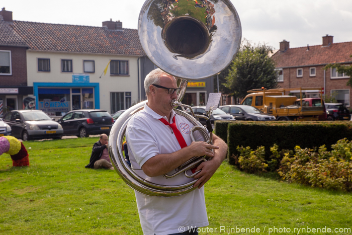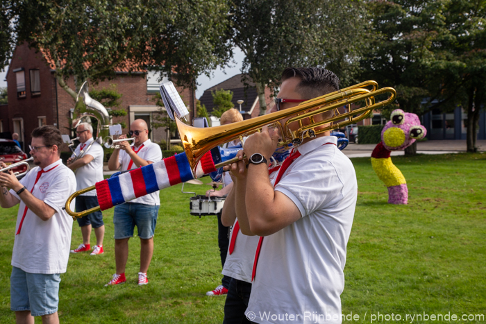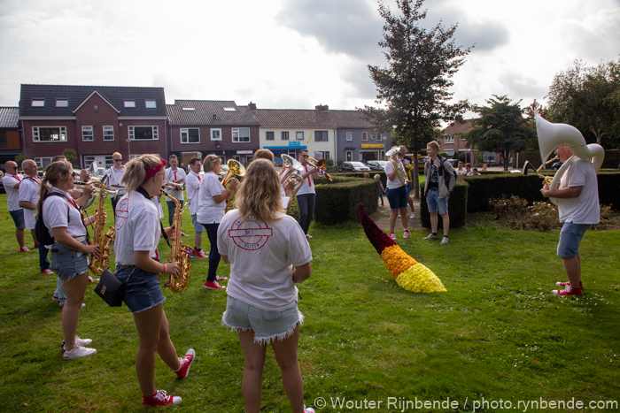 12 september 2021 - Voor het eerst in lange tijd waren er weer vrolijke noten te horen op straat. Dweilorkest 94½ van March & Showband Rheden verleende in Lichtenvoorde haar medewerking aan de Dahlia Kunstobjecten Route.