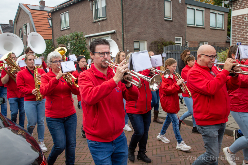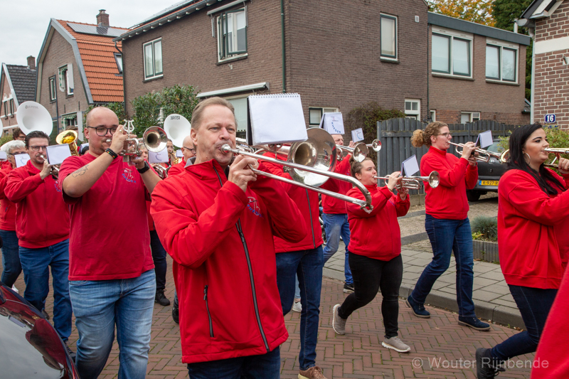 23 oktober 2021 - March & Showband Rheden maakte zaterdag 23 oktober een rondgang door Rheden om aandacht te besteden aan hun flessenactie voor nieuwe kleding.